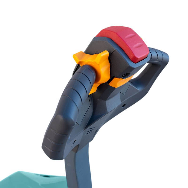 La palanca ergonómica con controles intuitivos facilita el manejo, e incorpora freno de servicio electromagnético para una parada segura. Sus velocidades de desplazamiento van de 4.3 km/h (cargado) a 4.8 km/h (sin carga), mientras que las velocidades de elevación y descenso están optimizadas para una operación fluida.