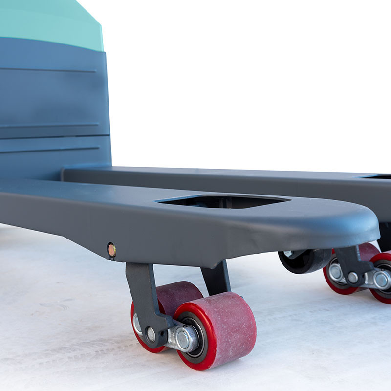Equipado com rodas em poliuretano (PU) que asseguram excelente aderência e menor desgaste, possui 2 rodas motrizes dianteiras e 4 rodas traseiras duplas para melhor distribuição do peso e maior estabilidade.